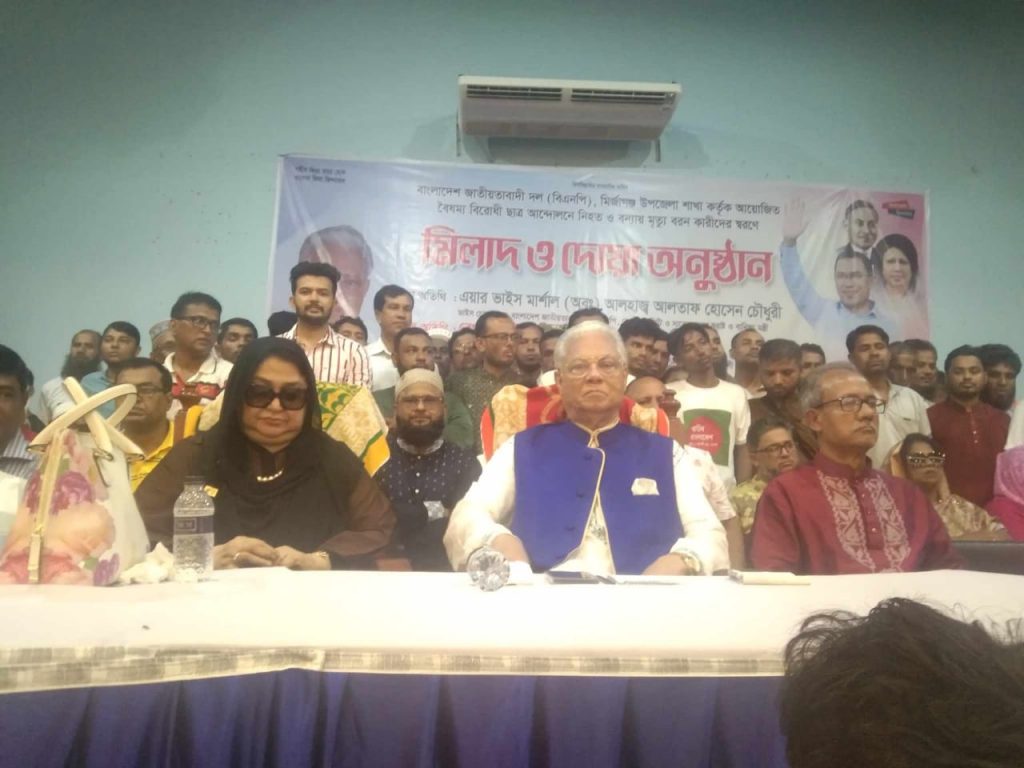 বিএনপির মধ্যে লুকিয়ে থাকা মুনাফিক ও আ’লীগের দালালদের চিহ্নিত করতে হবে।এরা আওয়ামী লীগের প্রেতাত্মা দলের মধ্যে বিভেদ সৃষ্টিকারী। এদের বিরুদ্ধে দলের নেতাকর্মীকে ঐক্যবদ্ধ থাকতে হবে।মির্জাগঞ্জ উপজেলা বিএনপির বিএনপির উদ্যোগে আজ সোমবার (২ সেপ্টেম্বর) দুপুর সাড়ে ১২ টার দিকে উপজেলার অডিটোরিয়ামে বৈষম্য বিরোধী ছাত্র আন্দোলনে শহীদ ও বন্যায় নিহতদের মাগফেরাত কামনায় দোয়া ও মিলাদ মাহফিলে এ কথা বলেন বিএনপির জাতীয় নির্বাহী কমিটির ভাইস চেয়ারম্যান ও সাবেক স্বরাষ্ট্রমন্ত্রী এয়ার ভাইস মার্শাল (অব.) আলতাফ হোসেন চৌধুরী।