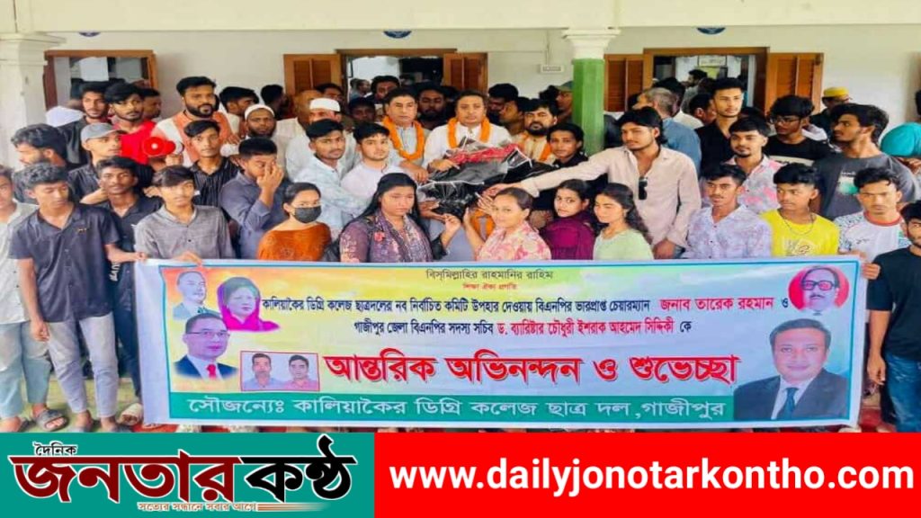 স্টাফ রিপোর্টার-মাছুদ রানাঃ- গাজীপুরের কালিয়াকৈর উপজেলার বিভিন্ন ইউনিয়নের বিএনপি’র আহবায়ক কমিটি ঘোষনা করায় আহবায়ক কিমিটির সদস্যরা গাজীপুর জেলা বিএনপি’র আহবায়ক কিমিটির সদস্য সচিব ড.ব্যারিস্টার চৌধুরী ইশরাক আহমেদ সিদ্দিকীর ও উপজেলা বিএনপি’র সাধারন সম্পাদক এম আনোয়ার হোসেনকে ফুলের তোড়া দিয়ে শুভেচ্ছা বিনিময় করেছেন। শুক্রবার গাজীপুর জেলা বিএনপি’র আহবায়ক কিমিটির সদস্য সচিব ড.ব্যারিস্টার চৌধুরী ইশরাক আহমেদ সিদ্দিকীর তার নিজ বাস ভবন উপজেলার বলিয়াদী জমিদার বাড়িতে এ অনুষ্ঠানের আয়োজন করা হয়। অনুষ্ঠানে উপজেলার ইউনিয়নের আহবায়ক কমিটির সদস্যসহ কয়েক হাজার বিভিন্ন শ্রেনীর নেতাকর্মীরা সমবেত হয়। এসময় উপস্থিত নেতাকর্মীরা তাদের প্রাণপ্রিয় নেতাদ্বয়কে হাতে ফুলের তোড়া ও গলায় মালা পড়িয়ে শুভেচ্ছা জানান। হাজার হাজার নেতাকর্মীরাচাদাবাজবিহীন,দুর্নীতিমুক্ত তাদের প্রাণের নেতার সাথে শুভেচ্ছা বিনিময় করার বিভিন্ন শ্লোগান ও ব্যানার নিয়ে বলিয়াদী ভবনে সমবেত হয়ে শ্লোগানে শ্লোগানে ভবন চত্বর মুখরিত করে তোলে। গাজীপুর জেলা বিএনপি’র আহবায়ক কমিটির সদস্য সচিব ড.ব্যারিস্টার চৌধুরী ইশরাক আহমেদ সিদ্দিকীর সমবেত কর্মীদের উদ্ধেশ্যে দলীয় নানা পরামর্শ প্রদান করেন। দলীয় ভাবমুর্তি ক্ষুন্ন হয় এমন কাজ না করাসহ এলাকার জনগন যাতে দলের প্রতি কোন প্রকার খারাপ মন্তব্য করতে না এব্যাপারে সকলকে সচেতন থাকার আহবান জানান। সবাই মিলেমিশে দলের জন্য কাজ করবে এবং বিএনপি’র ভারপ্রাপ্ত চেয়ারম্যান তারেক রহমানের নির্দেশিত পথ অনুসরন করে দলকে সামনের দিকে এগিয়ে নিয়ে যাবে এমন প্রত্যাশা রাখেন তিনি দলীয় নেতাকর্মীদের প্রতি। এসময় উপস্থিত ছিলেন উপজেলা বিএনপি’র সদস্য সচিব এম আনোয়ার হোসেন,পৌর বিএনপির আহবায়ক কমিটির সদস্য মো,আজিজুল ইসলাম আজিজসহ কালিয়াকৈর উপজেলায় কর্মরত বিভিন্ন সাংবাদিকসহ দলীয় নেতাকর্মীরা।