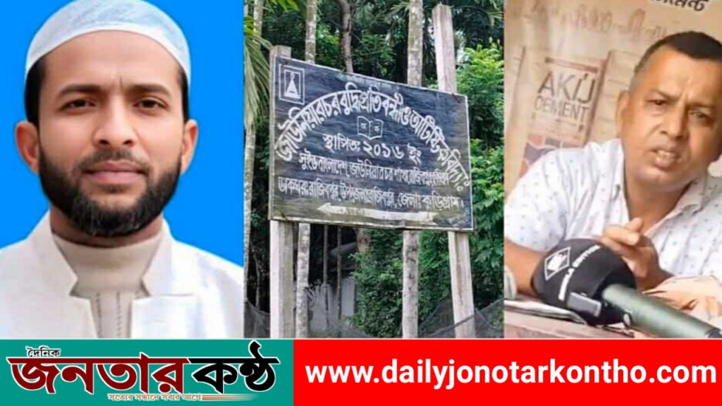 কুড়িগ্রাম প্রতিনিধিঃ- কুড়িগ্রামের রাজিবপুর উপজেলায় “জাউনিয়ার চর বুদ্ধি প্রতিবন্ধী ও অটিস্টিক বিদ্যালয়” নামে একটি ভুয়া শিক্ষা প্রতিষ্ঠান খুলে চাকরির আশ্বাসে প্রায় ১ কোটি টাকা হাতিয়ে নেওয়ার অভিযোগ উঠেছে স্থানীয় জামায়াত নেতা আনিছুর রহমান ও তার ভাজতী জামাই মোয়াজ্জেম হোসেন বাবুলের বিরুদ্ধে।