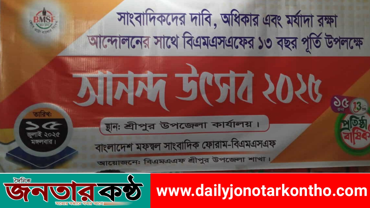 গাজীপুর প্রতিনিধিঃ- সাংবাদিকদের প্রাণের সংগঠন বাংলাদেশ মফস্বল সাংবাদিক ফোরাম বিএমএসএফ ১৩ পেরিয়ে ১৪ তে পদার্পণ উপলক্ষে কেন্দ্রীয় কমিটির নির্দেশে সারা বাংলাদেশে ১৪ তে পদার্পণ উপলক্ষে আনন্দ উৎসবের আয়োজন করেন গাজীপুরের শ্রীপুর উপজেলা কমিটি।