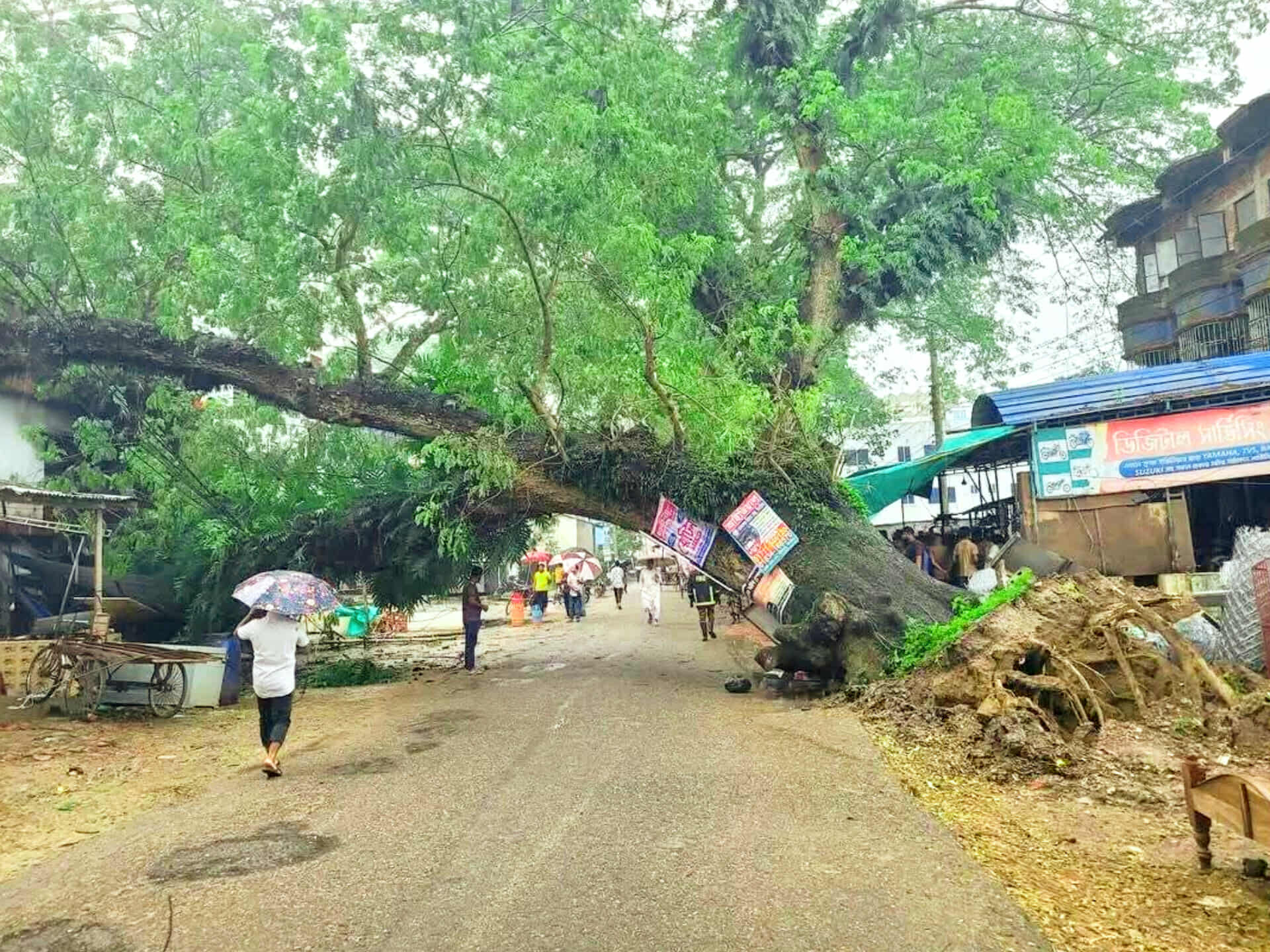 ভবনটির মালিক মঞ্জুর হোসেন টুটুল বলেন, এই ভবনের নিচে নিজের একটি রেস্টুরেন্ট রয়েছে। বিকেলে সবাই কাজে ব্যস্ত ছিল। হঠাৎ গাছটি উপড়ে পড়ে তার ভবনের উপর। এতে রেস্টুরেন্টের ব্যাপক ক্ষতি হয়েছে। দ্রুত এই শতবর্ষী গাছটি না সরালে ভবনটি ধ্বসে পড়তে পারে। তার রেস্টুরেন্টের একজন কর্মী আহত হয়েছেন।
