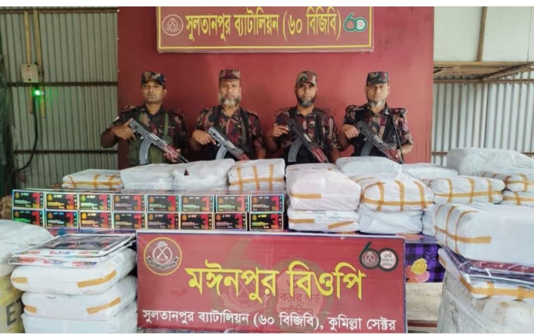 বিষয়টি নিশ্চিত করেছে বিজিবি-৬০ ব্যাটালিয়নের অধিনায়ক লে. কর্নেল মো. জিয়াউর রহমান বলেন, ‘মঈনপুর বিওপির আওতাধীন কসবার বিভিন্ন সীমান্ত এলাকায় অভিযান চালিয়ে ৩৩০ পিস ভারতীয় শাড়ি ও তিন হাজার ৬৫২ পিস মোবাইল ফোন ডিসপ্লে জব্দ করা হয়। এসব পণ্যের বাজার মূল্য প্রায় এক কোটি ৬৫ লাখ টাকা।’