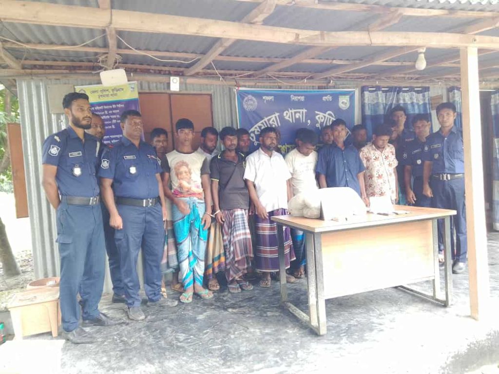 শহিদুল্লাহ ফরাজী, রাজিব পুর প্রতিনিধিঃ- কুড়িগ্রামের জেলায় ঢুষমারা থানার দক্ষিণ খাউরিয়া গ্রামে, এক গোপন সংবাদের ভিত্তিতে গভীর রাতে অভিযান চালিয়ে ইউনিয়ন মেম্বার সহ ১৪ জন জুয়ারী আটক করেছে পুলিশ, নয়ারহাট ইউনিয়ন পরিষদের ৪নং ওয়ার্ডের ইউপি সদস্য সানোয়ার হোসেনও রয়েছেন। অভিযানে জুয়া খেলার সরঞ্জাম সহ, নগত প্রায় ৪০ হাজার টাকা উদ্ধার করা হয়।