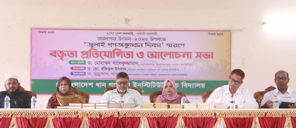 জুলাই গণঅভ্যুত্থান দিবস উপলক্ষে মঙ্গলবার ৫ আগস্ট বাংলাদেশ ধান গবেষণা ইনস্টিটিউটে (ব্রি) বক্তৃতা প্রতিযোগিতা ও আলোচনা সভা অনুষ্ঠিত হয়েছে। বি আর আর আই উচ্চ বিদ্যালয় আয়োজিত এ অনুষ্ঠানে প্রধান অতিথি হিসেবে উপস্থিত ছিলেন ব্রির মহাপরিচালক ড. মোহাম্মদ খালেকুজ্জামান। বিশেষ অতিথি হিসেবে উপস্থিত ছিলেন ব্রির পরিচালক (গবেষণা) ড. মো. রফিকুল ইসলাম, পরিচালক (প্রশাসন ও সাধারণ পরিচর্যা) ড. মুন্নুজান খানম এবং মহাপরিচালক মহোদয়ের সহধর্মিনী ফারজিয়া আহমেদ সিম্মি। অনুষ্ঠানে আরও উপস্থিত ছিলেন ব্রির কৃষিতত্ত্ব বিভাগের প্রিন্সিপাল সাইন্টিফিক অফিসার এবং জুলাই-আগস্ট গণঅভ্যুত্থান পালন কমিটির আহবায়ক ও ফোকাল পয়েন্ট ড. মো. আদিল বাদশাহ। সভাপতিত্ব করেন বি আর আর আই উচ্চ বিদ্যালয়ের প্রধান শিক্ষক আখের আলী দেওয়ান।সভায় প্রধান অতিথির বক্তব্যে ব্রির মহাপরিচালক ড. মোহাম্মদ খালেকুজ্জামান বলেন, আজ জুলাই গণঅভুত্থান দিবসে আমি জুলাই শহীদদের গভীর শ্রদ্ধার সঙ্গে স্মরণ করছি। তাদের আত্মার মাগফিরাত কামনা করছি। জুলাইয়ে যারা আহত হয়েছেন, চিরতরে পঙ্গু হয়েছেন, দৃষ্টি হারিয়েছেন, আমি তাদের প্রতি শ্রদ্ধা ও কৃতজ্ঞতা জানাচ্ছি। এ জাতি আপনাদের কাছে চিরকৃতজ্ঞ থাকবে। তিনি বলেন, জুলাই শহীদদের আত্মত্যাগ তখনই স্বার্থক হবে যখন আমরা এ দেশকে একটি সত্যিকারের জনকল্যাণকর দেশ হিসেবে গড়ে তুলতে পারবো। আজকের এই দিনে আমাদের শপথ নিতে হবে যে, কোনো ধরণের অন্যায় ও নিপীড়নের কাছে আমরা মাথা নোয়াবো না। আমরা প্রতিষ্ঠা করবো একটি জবাবদিহিমূলক, মানবিক, গণতান্ত্রিক এবং বৈষম্যহীন রাষ্ট্র। এমন রাষ্ট্র, যা সবসময় জনকল্যাণে কাজ করবে। তিনি বৈষম্যহীন বাংলাদেশ গড়তে শিক্ষার্থীদের সততা ও নিষ্ঠার সঙ্গে ভূমিকা রাখার জন্য আহবান জানান।আলোচনা সভা শেষে প্রধান অতিথি বক্তৃতা প্রতিযোগিতার ফলাফল ঘোষণা করেন এবং বিজয়ীদের মাঝে পুরষ্কার বিতরণ করেন।অনুষ্ঠানে ব্রির বিভাগ ও শাখা প্রধানগণ এবং বি আর আর আই উচ্চ বিদ্যালয়ের শিক্ষক ও শিক্ষার্থীবৃন্দ উপস্থিত ছিলেন।