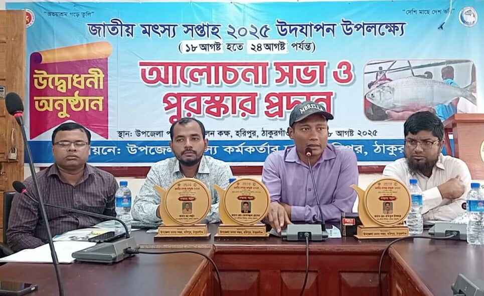 জহুরুল ইসলাম (জীবন) হরিপুর(ঠাকুরগাঁও) প্রতিনিধিঃ “অভয়াশ্রম গড়ে তুলি” “দেশি মাছে দেশ ভরি” এই প্রতিপাদ্য কে সামনে রেখে ঠাকুরগাঁওয়ের হরিপুরে জাতীয় মৎস্য সপ্তাহ উদযাপন উপলক্ষে র্যালি ও আলোচনা সভা অনুষ্ঠিত হয়েছে।