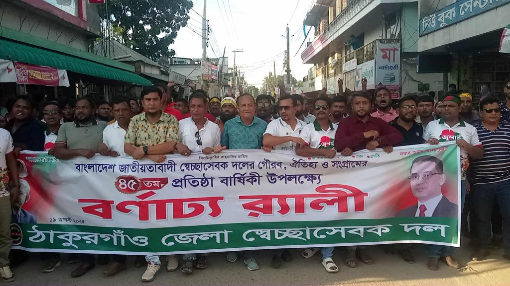 ঠাকুরগাঁওয়ে বাংলাদেশ জাতীয়তাবাদী স্বেচ্ছাসেবক দলের ৪৫ তম প্রতিষ্ঠা বার্ষিকী পালিত হয়েছে। এ উপলক্ষে দলটির পক্ষ থেকে বর্ণাঢ্য র‌্যালি বের করা হয়।