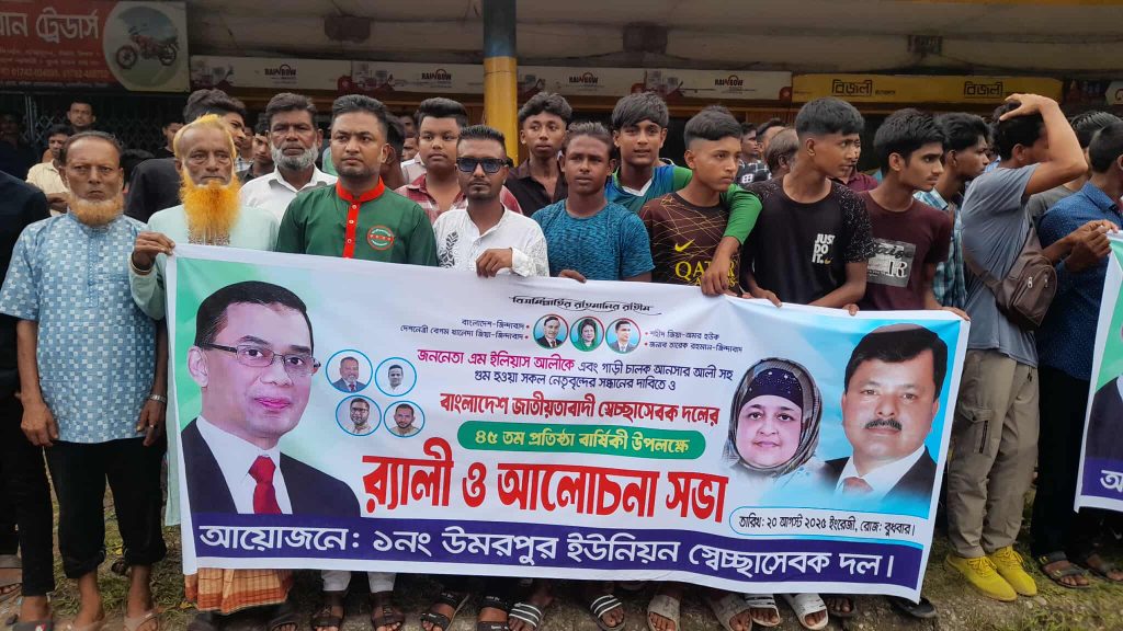 ওসমানী নগর গোয়ালা বাজারে জাতীয়তাবাদী স্বেচ্ছাসেবক দলের প্রতিষ্ঠাবার্ষিকী উদযাপন করেছে সংগঠনটির নেতাকর্মীরা।