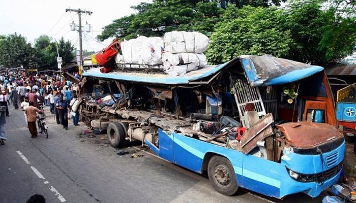 পুলিশ ও হাসপাতাল সূত্রে জানা গেছে, রোববার (১৪ সেপ্টেম্বর) রাত ১১টার কিছু সময় আগে ঢাকা থেকে যশোরমুখী একটি যাত্রীবাহী বাস দাঁড়িয়ে থাকা বাঁশবোঝাই একটি ট্রাককে পেছন থেকে ধাক্কা দিলে হতাহতের এই ঘটনা ঘটে।