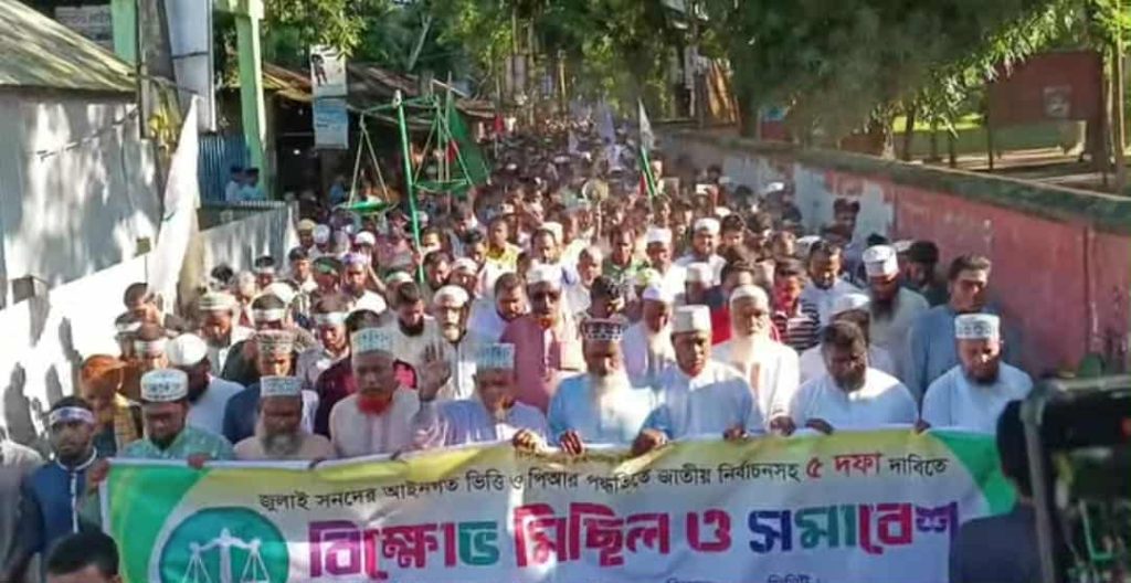 কুড়িগ্রামের রাজিবপুরে পি আর (আনুপাতিক প্রতিনিধিত্ব) পদ্ধতি ও জুলাই জাতীয় সনদের ভিত্তিতে নির্বাচনসহ ৫ দফা দাবিতে রাজিবপুরে বিক্ষোভ মিছিল ও সমাবেশ করেছে বাংলাদেশ জামায়েত ইসলামী রাজিবপুর উপজেলা।