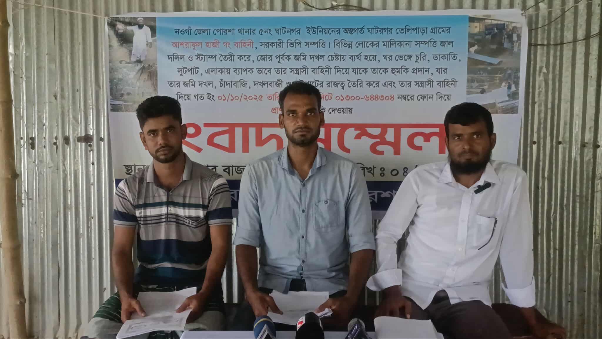 নওগাঁ জেলার পোরশা থানার ৫নং ঘাটনগর ইউনিয়নের ঘাটনগর তেলিপাড়া গ্রামের আশরাফুল হাজী ও তার সহযোগীদের বিরুদ্ধে জাল দলিল তৈরি করে ভূমি দখল, লুটপাট এবং সন্ত্রাসী কর্মকাণ্ডের অভিযোগে এক সংবাদ সম্মেলন অনুষ্ঠিত হয়েছে।