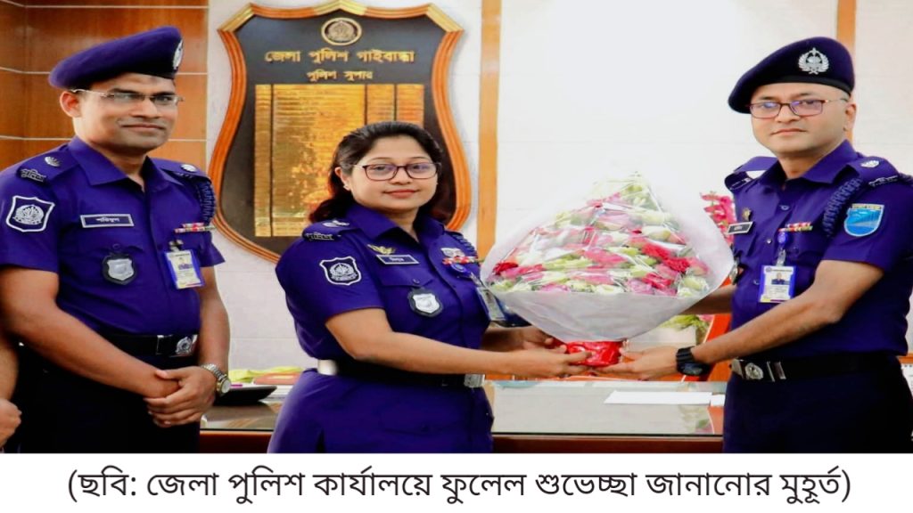 দায়িত্ব গ্রহণ উপলক্ষে গাইবান্ধা জেলার পুলিশ সুপার জনাব নিশাত এ্যাঞ্জেলা নবাগত কর্মকর্তাকে ফুলেল শুভেচ্ছা জানিয়ে বরণ করে নেন।