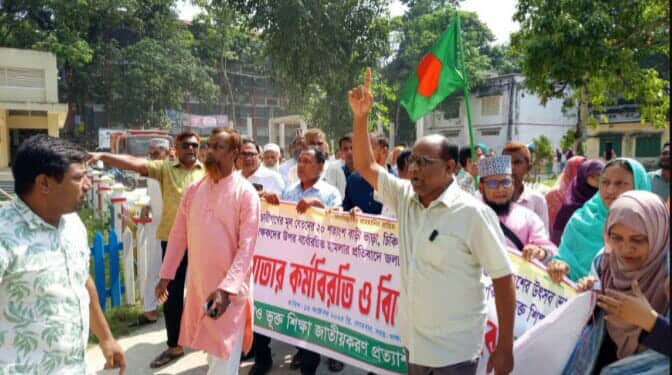 এমপিও ভুক্ত শিক্ষক-কর্মচারীদের মূল বেতনের ২০ শতাংশ বাড়ি ভাতা, চিকিৎসা ভাতা, কর্মচারীদের ৭৫ শতাংশ উৎসব ভাতা প্রদান এবং আন্দোলনরত শিক্ষকদের উপর হামলার প্রতিবাদে সারাদেশের ন্যায় নীলফামারীর জলঢাকায় এমপিওভুক্ত শিক্ষা জাতীয়করণ প্রত্যাশী জোটের উদ্যোগে