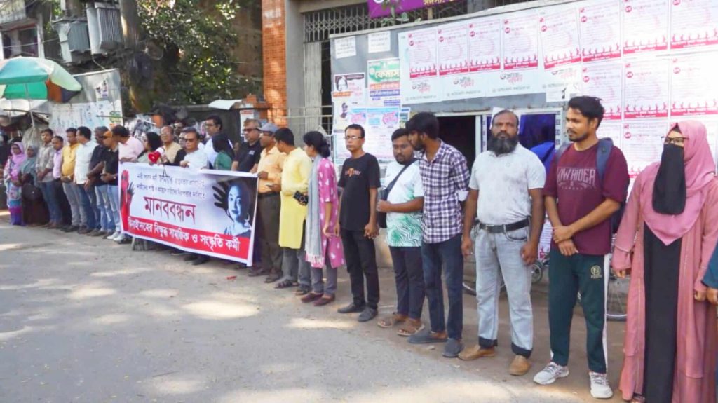 মিডিয়াকর্মি স্বর্ণময়ীর আত্মহত্যায় প্ররোচানাকারীর শাস্তির দাবীতে ঝিনাইদহে মানববন্ধন
