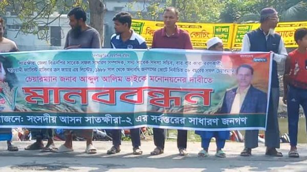 সাতক্ষীরায় বিএনপি নেতা আব্দুল আলীম এর মনোনয়নের দাবিতে মানববন্ধন অনুষ্ঠিত