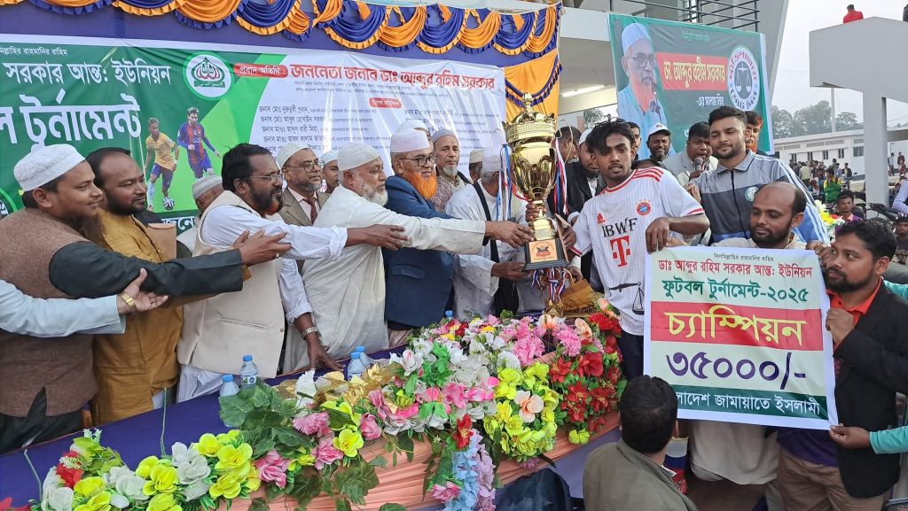 গাইবান্ধার গোবিন্দগঞ্জে ডা. আব্দুর রহিম সরকার আন্তঃইউনিয়ন ফুটবল টুর্নামেন্ট-২০২৫ এর ফাইনাল খেলা ও পুরস্কার বিতরণী অনুষ্ঠিত হয়েছে।