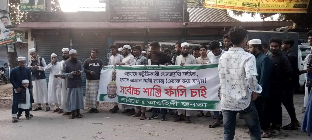 তথ্যসূত্রে জানা যায়, সারদাগঞ্জের সাধু নগর এলাকার রমজান আলী রঞ্জু সাধু কুরুচিপূর্ণ মন্তব্যের জেরে প্রতিবাদস্বরূপ সকল তৌহিদী জনতা সহ ধর্মপ্রাণ মুসলমানের ক্ষোভের মুখে পড়েন।
