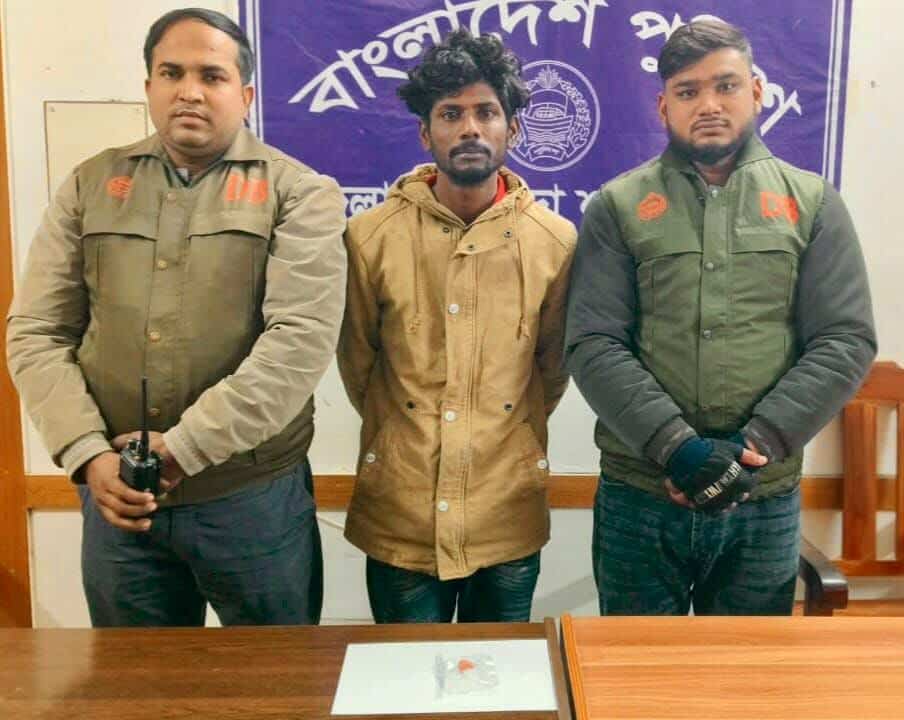 চুয়াডাঙ্গা জেলার সুযোগ্য পুলিশ সুপার জনাব মোহাম্মদ মনিরুল ইসলাম মহোদয়ের সার্বিক দিকনির্দেশনায় জেলা পুলিশের সকল ইউনিটে একযোগে মাদক ও চোরাচালান বিরোধী অভিযান পরিচালিত হচ্ছে। তারই ধারাবাহিকতায় জেলা গোয়েন্দা শাখা (ডিবি) কর্তৃক মাদক বিরোধী বিশেষ অভিযানে এসআই(নিঃ) সৌমিত্র সাহা, এসআই(নিঃ) আবু হেনা মোঃ মোস্তফা কামাল, এএসআই(নিঃ)/মোঃ আবু আল ইমরান, সঙ্গীয় ফোর্সসহ আজ ০৩ জানুয়ারি ২০২৬ তারিখ বিকাল ১৫:৪৫ ঘটিকায় দামুড়হুদা থানাধীন পুড়াপাড়াস্থ মেসার্স বিল্ড ব্রিকস এর সামনে পাকা রাস্তার উপর হতে আসামী ১। মোঃ সজীব হাসান(২৬), পিতা-মৃত তৈয়ব আলী, মাতা- মুসলিমা খাতুন, সাং- মাদ্রাসাপাড়া, থানা- দামুড়হুদা, জেলা-চুয়াডাঙ্গা’কে গ্রেফতার পূর্বক আসামীর হেফাজত হতে ২৫ (পঁচিশ) পিস অবৈধ মাদকদ্রব্য ইয়াবা ট্যাবলেট উদ্ধার করা হয়।