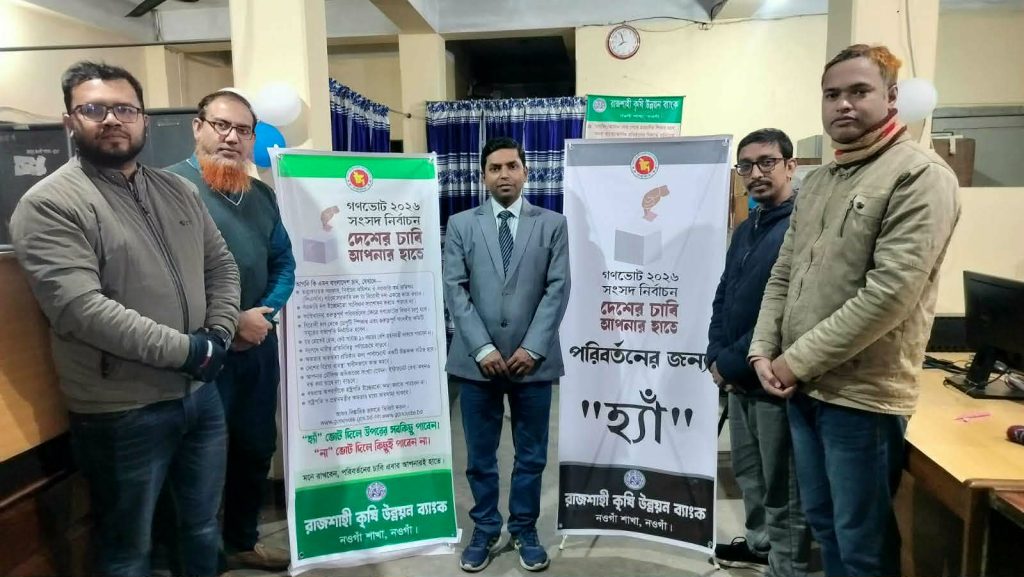 আসন্ন গনভোটকে সামনে রেখে রাকাব নওগাঁ জোনের আওতাধীন সকল শাখায় ‘হ্যাঁ’ ভোটের পক্ষে ব্যাপক প্রচারণা কার্যক্রম পরিচালিত হচ্ছে। মাঠপর্যায়ে সদস্যদের সঙ্গে মতবিনিময়, সচেতনতামূলক আলোচনা সভা ও সরাসরি যোগাযোগের মাধ্যমে গনভোটের গুরুত্ব ও ইতিবাচক দিক তুলে ধরা হচ্ছে।