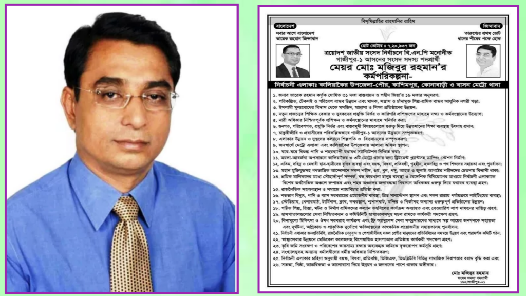 গাজীপুর-১ আসনে বিএনপি মনোনীত প্রার্থী মেয়র মোঃ মজিবুর রহমানের ২৬ দফা কর্মপরিকল্পনা প্রকাশ