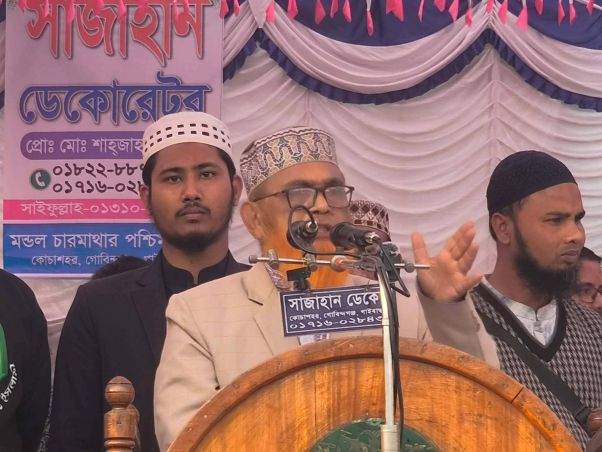 উপজেলা জামায়াতে ইসলামীর আমীর আবুল হোসাইন সরকারের সভাপতিত্বে এবং সেক্রেটারী মাওলানা আবুল কালাম আজাদের সঞ্চালনায় সমাবেশে বক্তব্য রাখেন রাজশাহী বিশ্ববিদ্যালয়ের ভিপি মোস্তাকুর রহমান জাহিদ, রাজশাহী বিশ্ববিদ্যালয় ছাত্রশিবিরের সভাপতি মুজাহিদ ফয়সাল, বেগম রোকেয়া বিশ্ববিদ্যালয় ছাত্রশিবিরের সভাপতি সুমন সরকার, জেলা শ্রমিক কল্যাণ ফেডারেশনের সভাপতি নুরন্নবী প্রধান, উপজেলা জমায়াতে ইসলামীর সহ সেক্রেটারী অধ্যাপক আশরাফুল ইসলাম রাজু, মশিউর রহমান প্রমুখ।