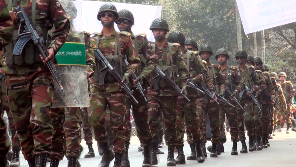 মৌলভীবাজার নির্বাচনী নিরাপত্তায় সেনাবাহিনীর মহড়া।[/caption]