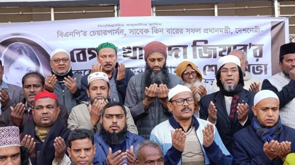 বিএনপির সাবেক চেয়ারপারসন ও সাবেক প্রধানমন্ত্রী মরহুমা বেগম খালেদা জিয়ার বিদেহী আত্মার মাগফেরাত কামনায় গাইবান্ধার গোবিন্দগঞ্জ উপজেলায় দোয়া মাহফিল অনুষ্ঠিত হয়েছে। শনিবার (১০ জানুয়ারি) বাদ আসর উপজেলার কামারদহ ইউনিয়নের ফাঁসিতলা